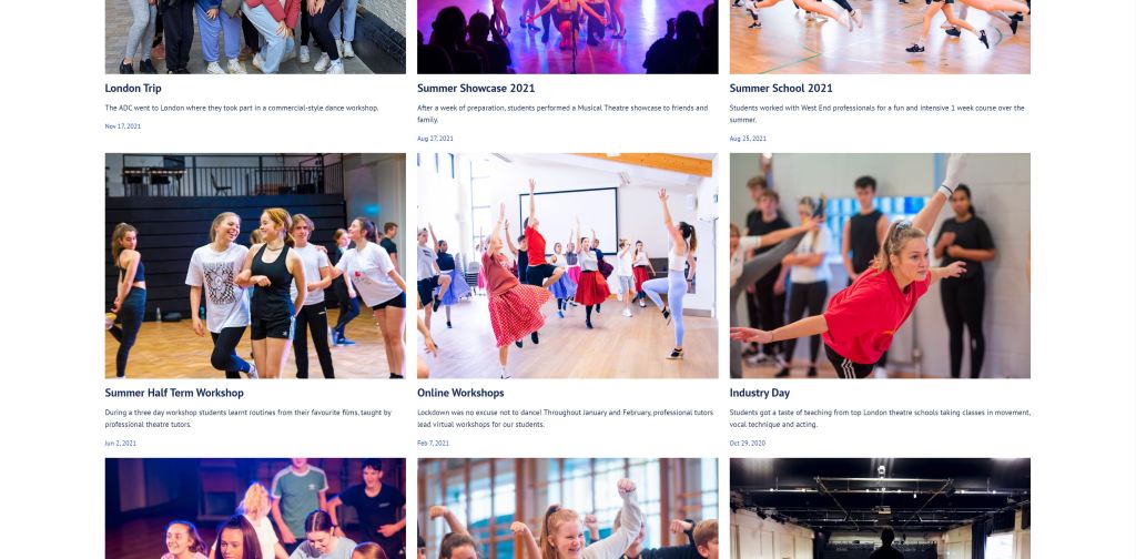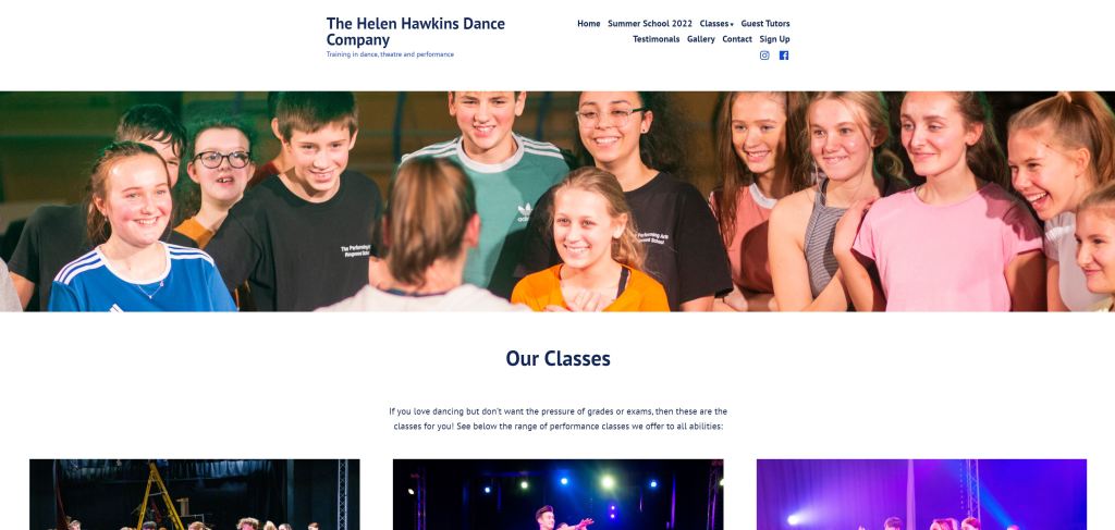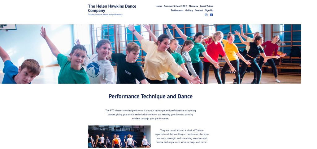 I was hired to develop a website for a local dance company expanding its brand. I designed and formatted the webpage using WordPress, ensuring I produced an accessible, user-friendly and visually aesthetic and dynamic site. On this website, I created pages including some detailing class information, teacher bios, testimonials and a gallery blog. As well as this, I assembled an interactive form for people to sign up for a summer school directly through the website, their information emailed directly to the client. Following are some screenshots of the pages, but the website is best viewed via the link below: